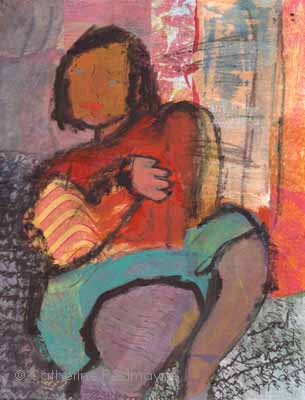 Girl in an awkward pose. Mixed media on paper.