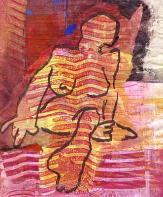 Venetian blinds Sun through the blinds a bold drawing of a nude striped by light coming through the blinds