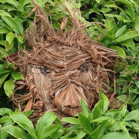 Next Image lion in wait Lion in wait lion mask constructed of paper, thread and dried crocosmia leaves