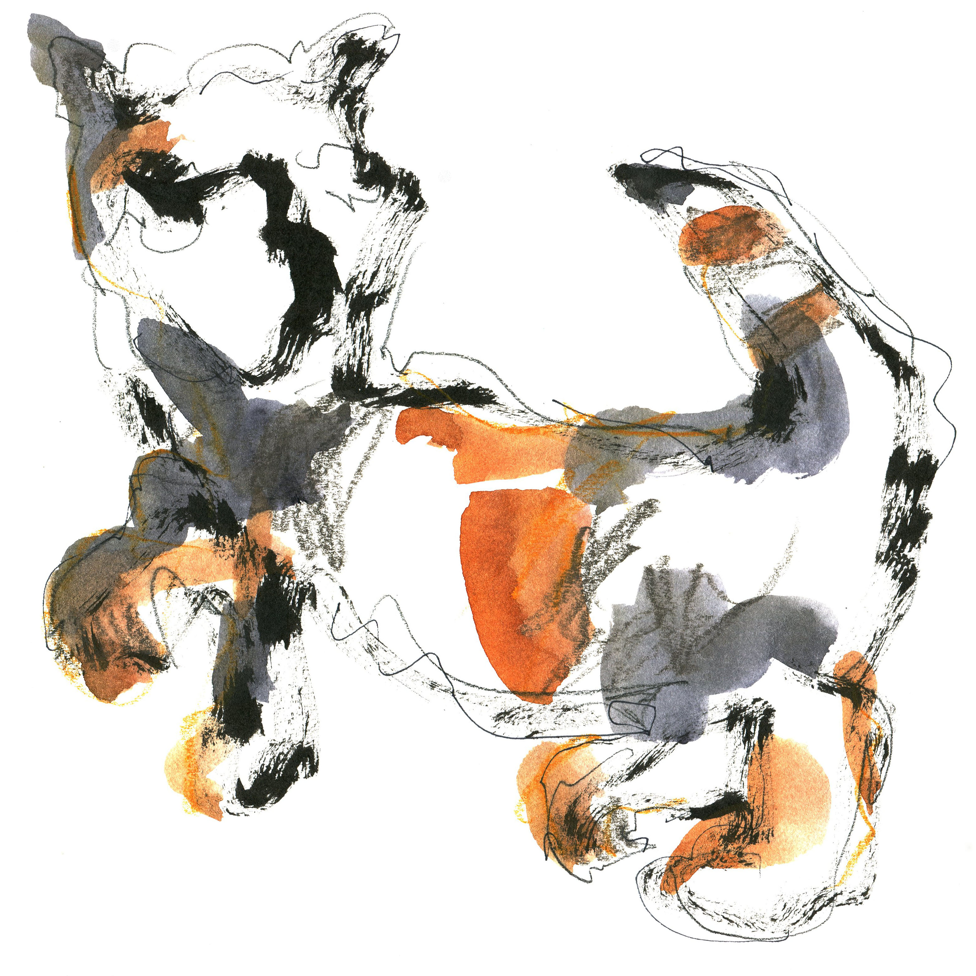 free ink drawing of a cat with added colour by Catherine Redmayne