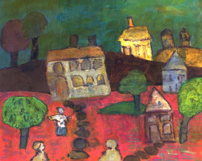 I feel like I am observing a French village, one that is delightful. I want to know what the people are doing and what the story is for the moment that you caught it. I like this piece a lot. 🙂