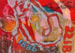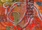 On my ATCs are: the famous house number for Holmes and Watson of 221B, the year the story was written – 1886, a wedding ring which was a clue, the magnifying glass which appeared first in this book, and the scarlet thread.
