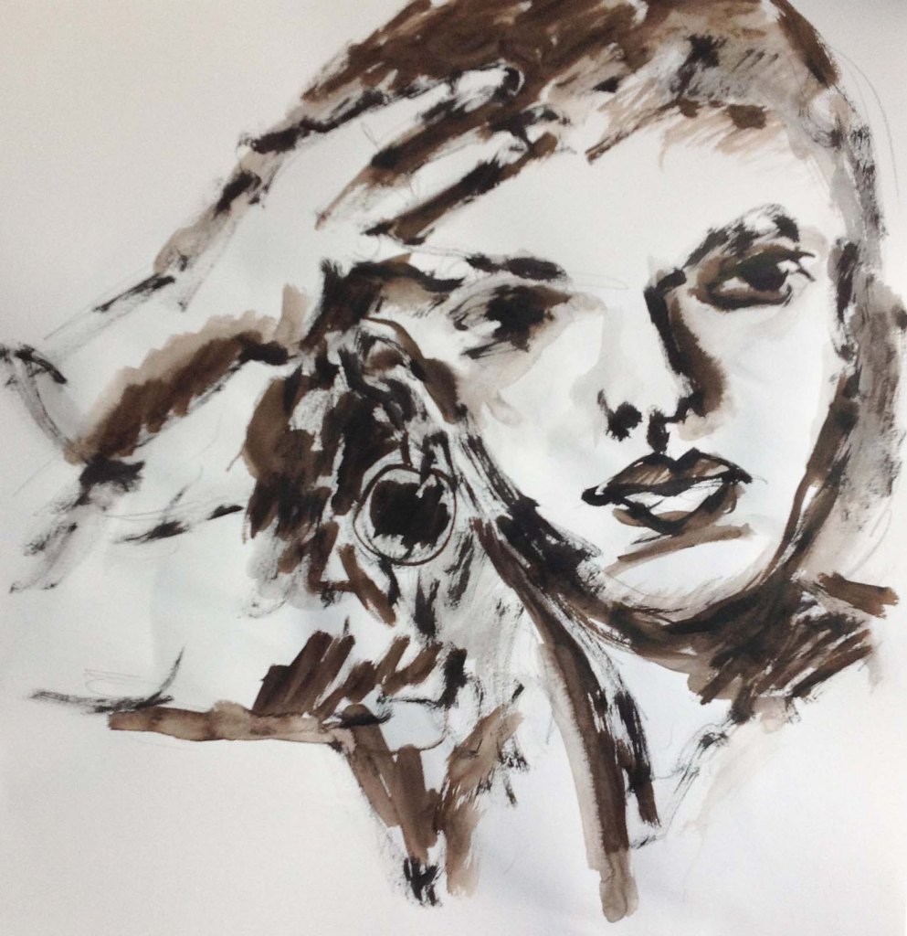 Another Royal Drawing School evening workshop. Here are a couple of drawings done with ink brush pen and water. We were given 5-15 minutes. The model sat beautifully still BUT the same could not be said for her features! She had a wonderfully twitchy nose like a rabbit and eyes which went from near asleep to wide open!