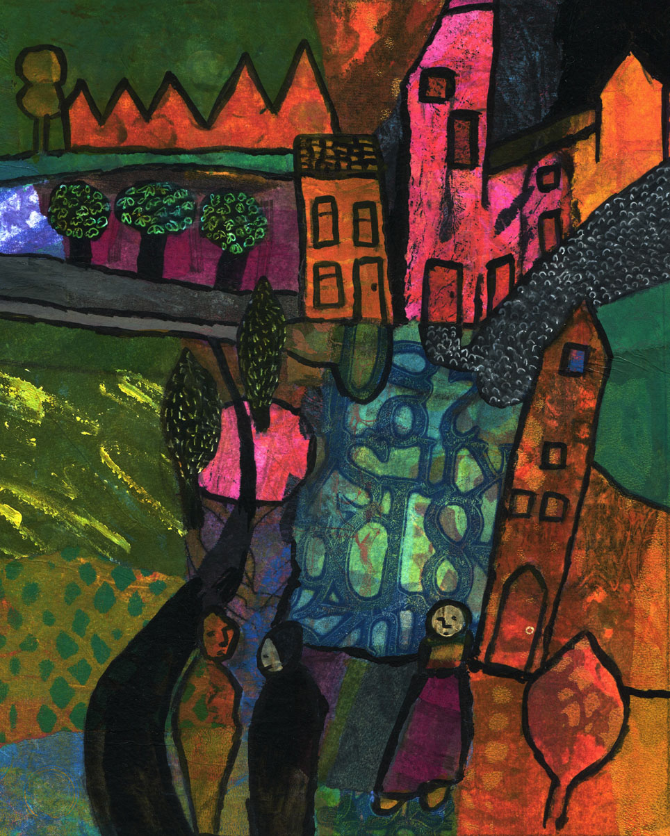 Previous ImageNext Image having-a-catch-up Having a catch-up Friends encounter each other in the foreground of a colourful landscape.