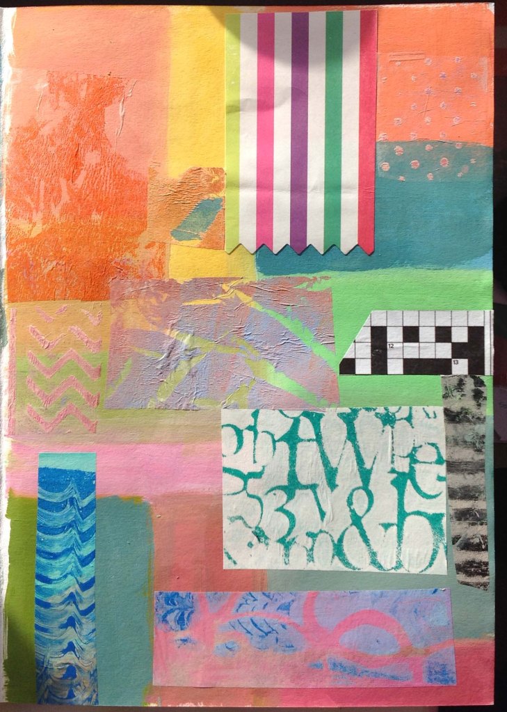 From the first lesson in Everything Jane Davies: here is a sample of collage built over layered paint.