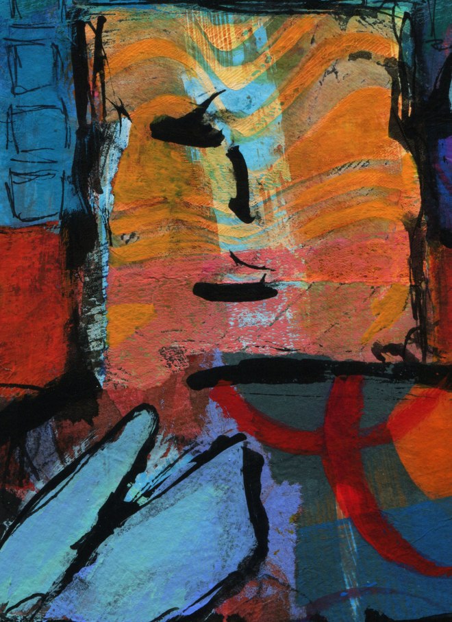 Focus not great – don’t like new camera! But am in love with Lascaux’s brilliant colours as usual. 30×30 cms on panel. For sale.