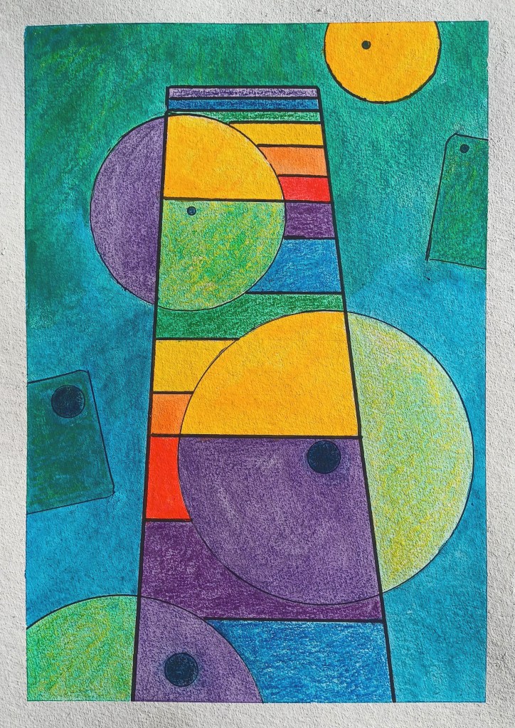 - Begun exercises in 2LilOwls course on Kandinsky. Here are my efforts at concentric circles in squares:
