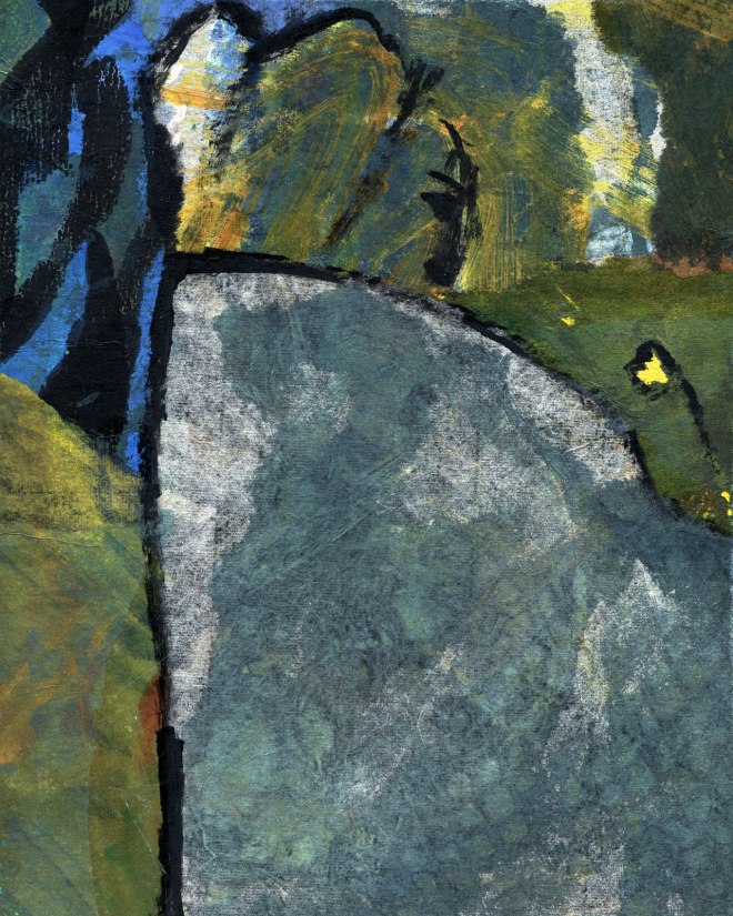 Image is 8×10 inches (20×25.5 cm). It emerged like many of my paintings from a random start. It is for sale.